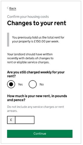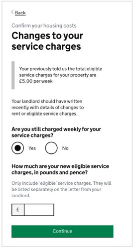 Please only use the ‘Confirm your housing costs’ to report your annual rent charge and do not use the ‘Changes of circumstances’ option in your online account. Doing so will delay us confirming your new annual rent.