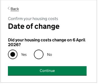 This will also tell you the date of the change so you can use this to check what day you will receive the ‘Confirm your housing costs’ to-do.