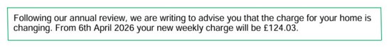 - 6 April 2026 for all those are charged rent weekly.