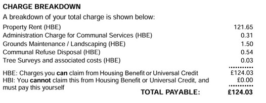 Not all properties will have service charges so do not worry if your letter only shows property rent. It may also have been broken down to show rent and total eligible service charges already.